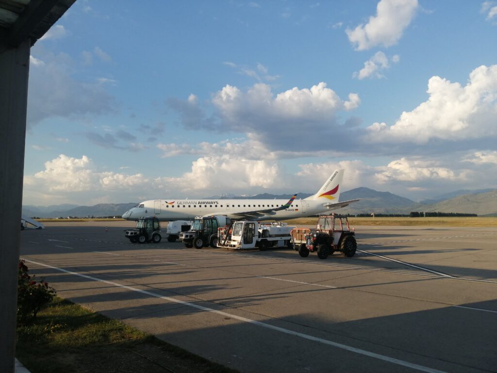 Od juče se na pisti podgoričkog aerodroma mogao vidjeti avion nemačke kompanije German Airways, tipa Embraer 190 sa kapacitetom 100 sjedećih mjesta, od kojih je 12 u biznis klasi a 88 u ekonomskoj. Ovaj avion će sa “Alfom” (avion oznake 40-AOA) činiti flotu AirMontenegro dok flota ne bude potpuna. German Airways je aviokompanija koja se bavi čarter letovima i iznajmljivanjem aviona iz svoje flote.
