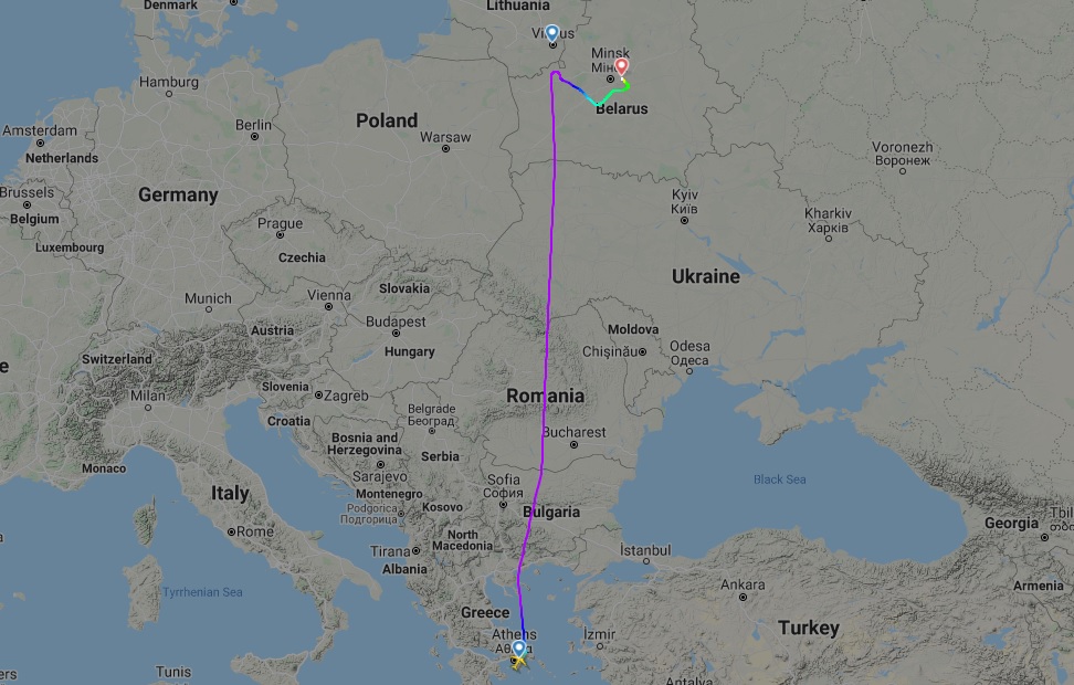 Prema pres-službi bjeloruskog predsjednika Aleksandra Lukašenka, bjeloruski lovac MiG-29 poslat je u pratnju aviona Ryan Air, let FR4978 iz Atine za Vilnius.