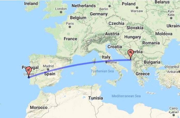 Razdaljinu od Lisabona do Podgorice, koja iznosi oko 2430km, avion E195 pređe za oko 3h 17minuta