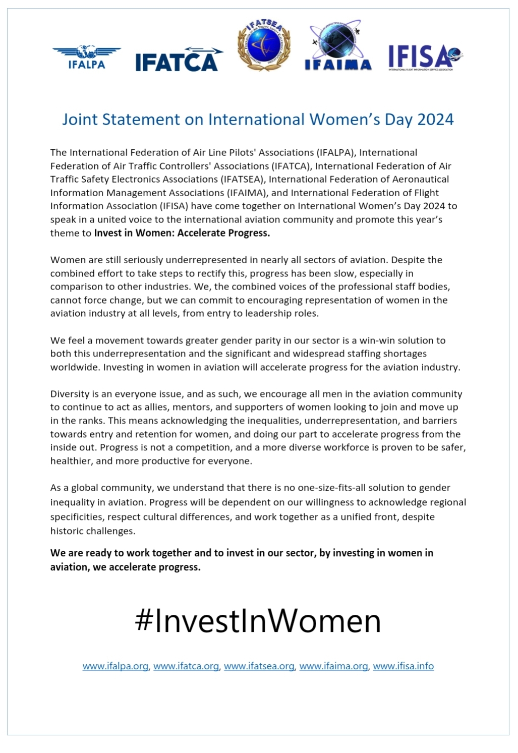 IFALPA, IFATSEA, IFATCA, IFAIMA i IFISA pozivaju na veće učešće žena u avijaciji