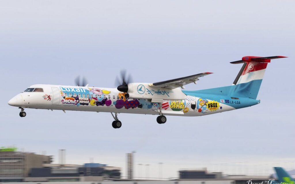Najljepši avion Luxaira Q400, LX-LQA, u specijalnoj, raznobojnoj livreji, koji je kreirao luksemburški umjetnik, Sumo