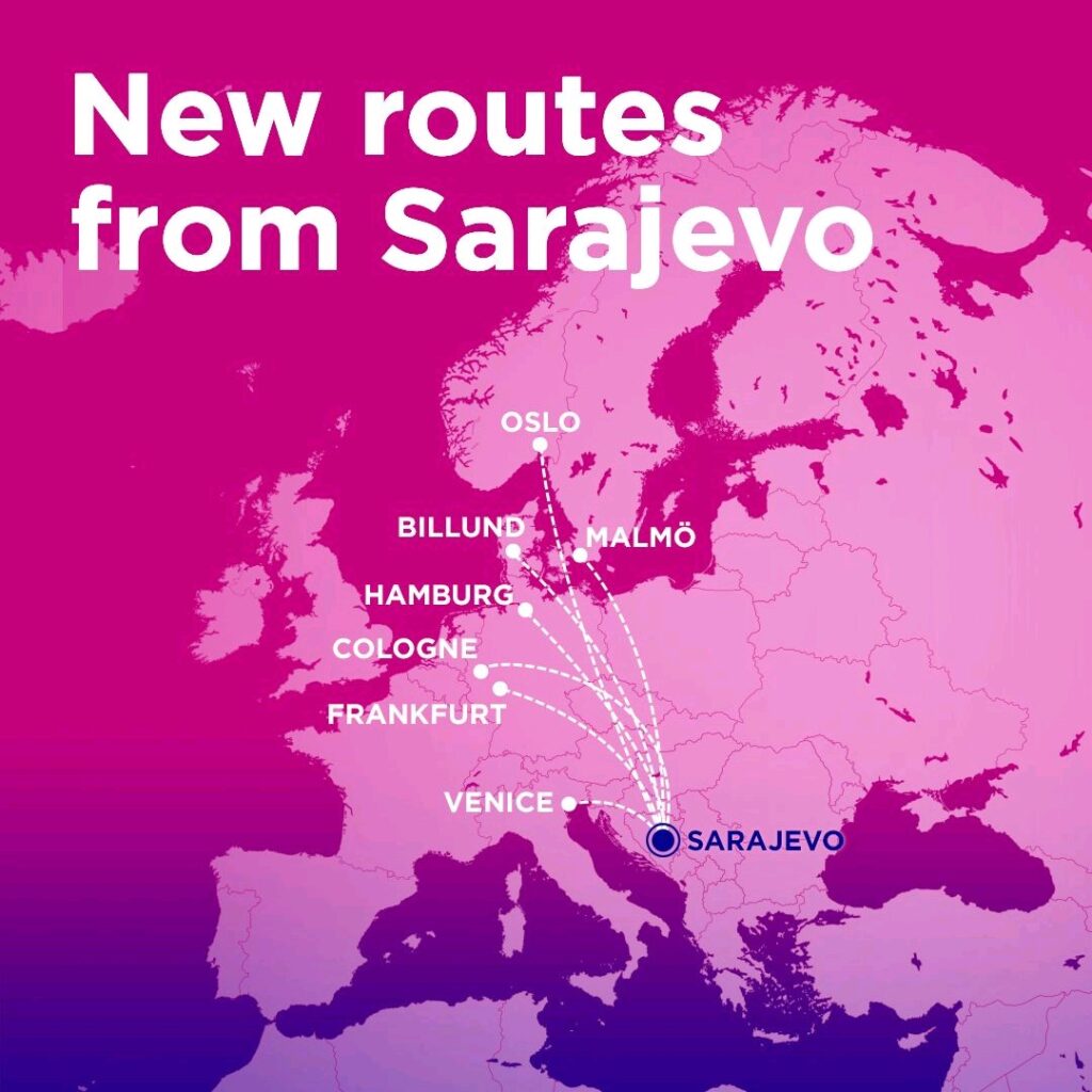 Aviokompanija Wizz Air danas je najavila dodavanje drugog aviona u svoju bazu u Sarajevu. Novi Airbus A320 će se u decembru 2021. godine pridružiti floti, što će omogućiti početak letenja na sedam novih ruta iz Sarajeva prema Frankfurtu, Kelnu, Hamburgu (Njemačka), Veneciji (Italija), Billundu (Danska), Malmou (Švedska) i Oslu (Norveška). Najavljeno je i pojačanje frekvencije postojećih letova ove aviokompanije prema sljedećim destinacijama: Kopenhagen, Dortmund, Gothenburg Landvetter, Stockholm Skavsta i Memmingen/Munich West.