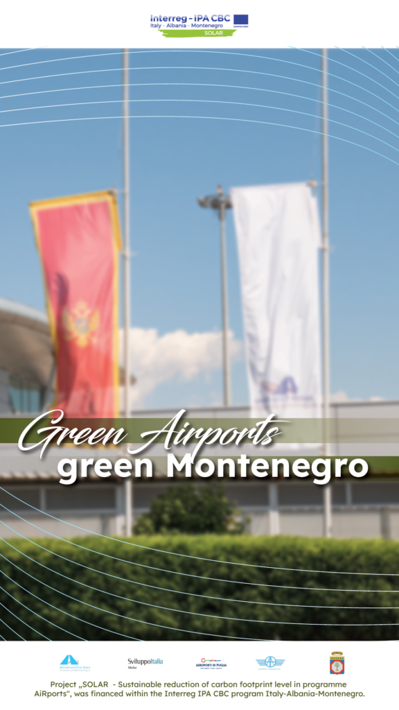 U cilju održivog upravljanja emisijom CO2 na aerodromima, Aerodromi Crne Gore su od početka 2022. godine uspješno sprovodili projekat „Održivo smanjenje nivoa karbonskog otiska u sklopu programu za aerodrome – SOLAR“. To je evropski projekat, koji se realizuje u okviru Interreg IPA programa prekogranične saradnje Italija-Albanija-Crna Gora.